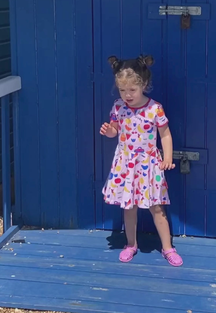 This delightful skater dress features a charming picnic print, capturing the essence of outdoor fun. Made from 100% GOTS-certified organic cotton, it boasts short sleeves and a twirly skirt, making it a favorite for little ones.